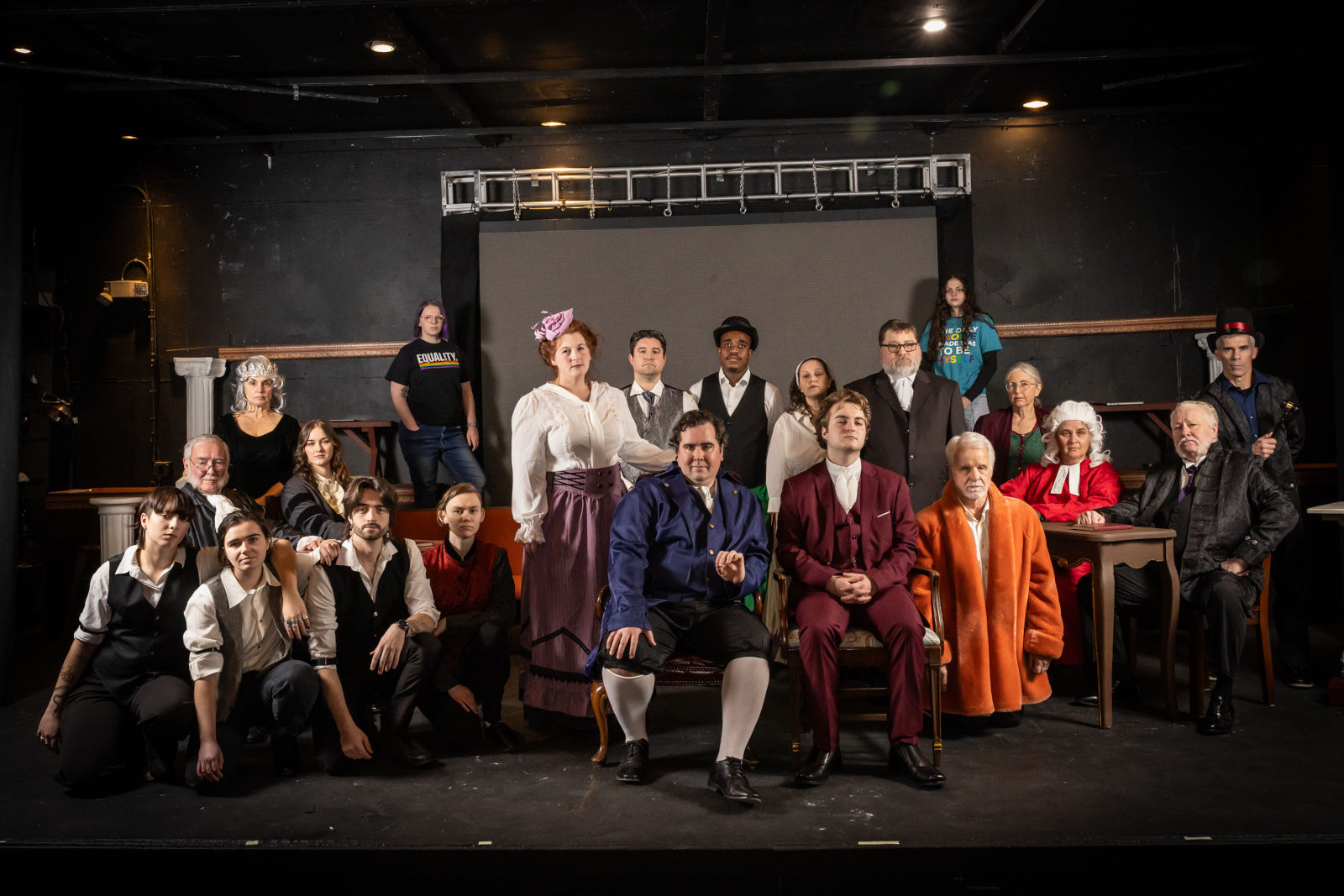 Cory Baker (Frank Harris), Ingrid Biederman (Constance, Narrator #7), Doug Browell (Marquess of Queensbury), Jennifer Chimbidis (Narrator #6, Prostitute, Lady Brandon, Mrs. Ellen Grant), Kelsey Demel (Charles Gil), Lynn Eitam (Speranza, Clerk of the Arraignments #1 & #2), Allison Fagan (Frank Lockwood, Queen Victoria), Ro Frazee (Narrator #4, Landlord, William Parker), Patrick Goldman (Edward Carson), Brian Henry (Professor Taylor), Jeff Kemeter (Narrator #5, Wright, Claridge), Joel Mamlin (Narrator #1, Fred Atkins), Chelsea Martins (Moises Kaufman), Jim McCullough (George Bernard Shaw, Willie, Antonio Migge), Alex Motsinger (Foreman #1, Alfred Wood), Nicholas Norton (Charles Parker), Alex Nyamohanga (Narrator #3, Hotel Manager), Oliver Powell (Lord Alfred Douglas (Bosie)), Aaron Schrein (Richards, Auctioneer, Foreman #2, Police), Kris Stage (Mavor, Narrator), David Tull (Oscar Wilde), Molly Watson (Judge, Narrator #8), Phil Wells (Sir Edward Clarke), & Bailey Weyand (Narrator #2, Mary Applegate)